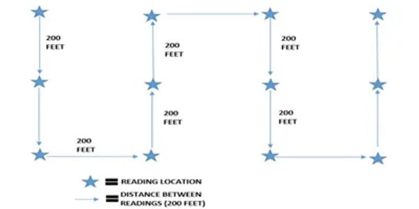 HMPA surveys are typically conducted in a grid pattern with scans taken every 200 feet. At each data point, a 120 second scan is performed while the system looks for the HMPA signal. Each scan is recorded with GPS. The data generated by the software helps to determine reservoir size, thickness of the oil column within the reservoir and other characteristics used to establish suggested drill site locations. If the HMPA survey over a given tract does not detect the presence of the HMPA signal under any data point, this is called a “barren” tract and would likely yield a negative drill test. Not every scan will detect the HMPA signal as it is not constantly occurring. It occurs at irregular intervals but will most likely occur within the 120 second scan time. When positive areas are detected, spacing is usually tightened to 100 feet. The more data points that are recorded and the closer the spacing between these points, the more accurate the system will be at detecting an anomalous feature.